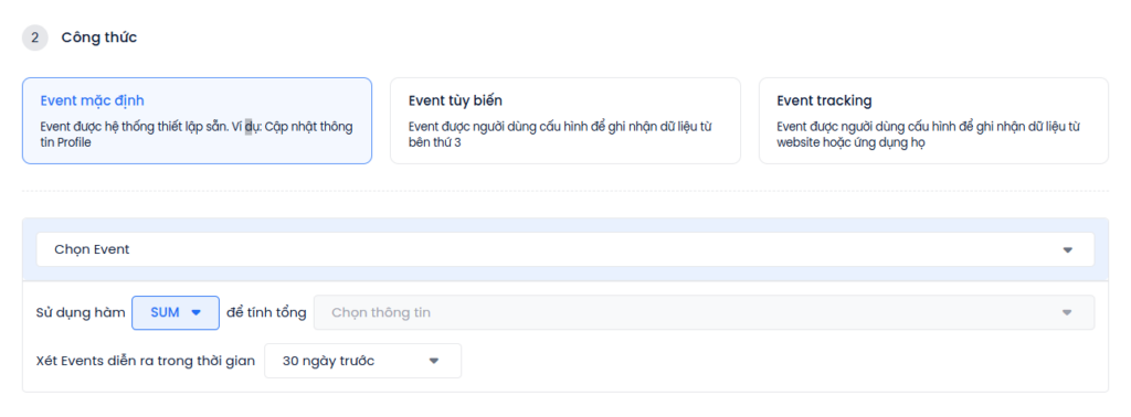 - Chọn loại event cần tính toán