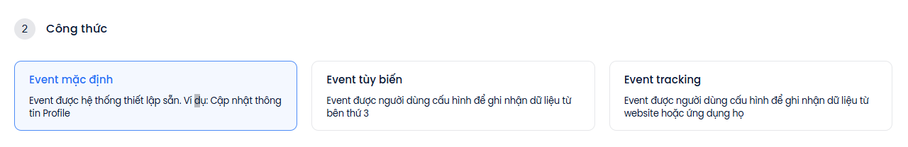 - Event mặc định: chọn event từ danh sách cách event hệ thống tạo sẵn
