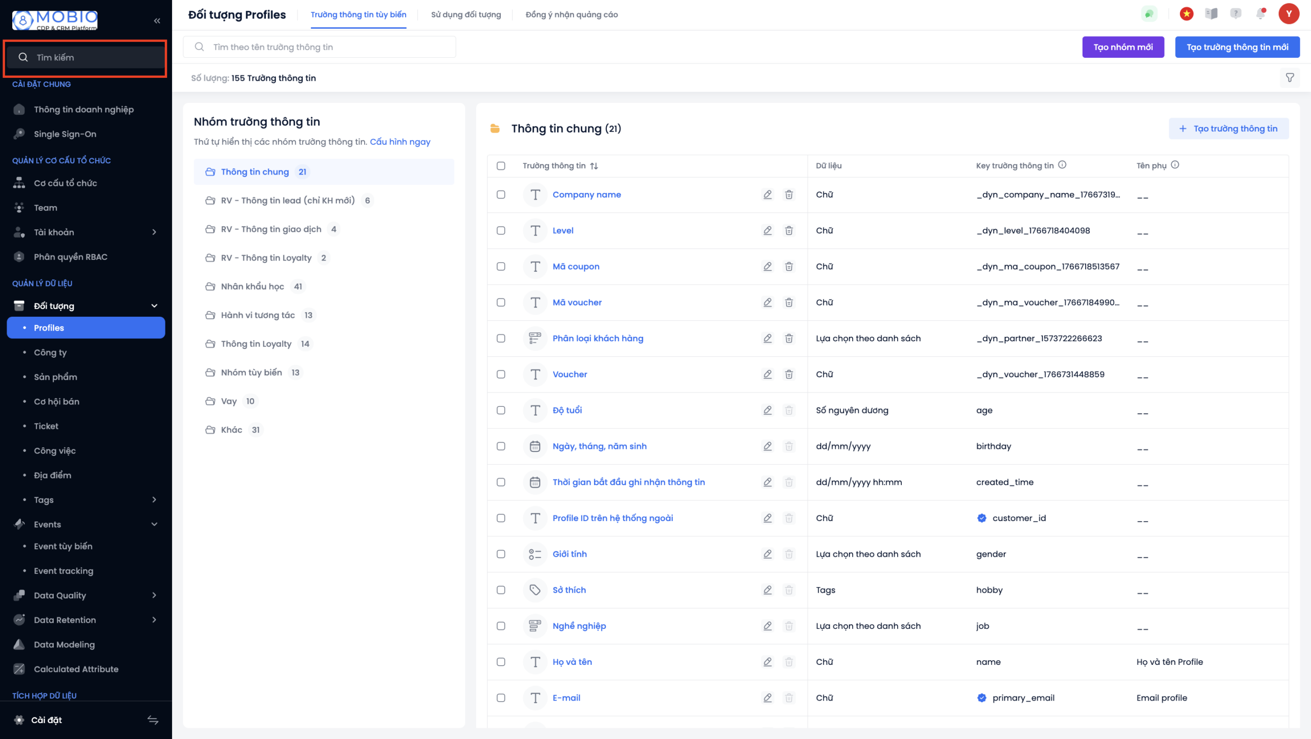 Chức năng Tìm kiếm ở dòng sản phẩm Activation CDP