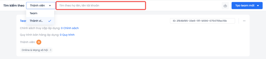 Hỏi: Tại sao tôi không thể gán một thành viên vào Team Online & MXH thứ hai? Trả lời: Theo quy định hệ thống, đối với nhóm chức năng Online & MXH, một tài khoản chỉ được phép tồn tại duy nhất trong 1 Team để tránh xung đột luồng chat tự động phân bổ.