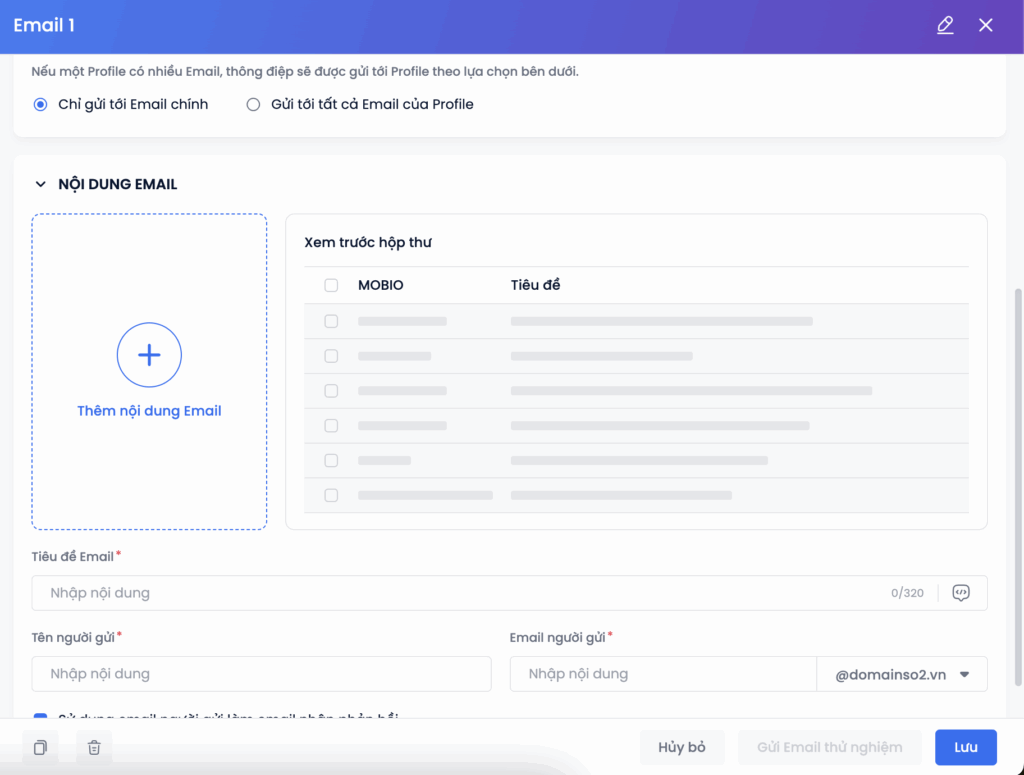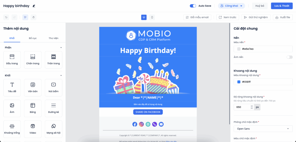 Email Builder cho phép người dùng tự tạo nội dung Email Marketing phù hợp với thông điệp của từng chiến dịch Marketing.
