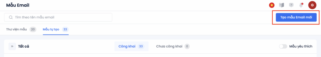 + Mẫu tự tạo: Là những mẫu email mà người dùng đã tự tạo, chỉnh sửa và đã lưu.