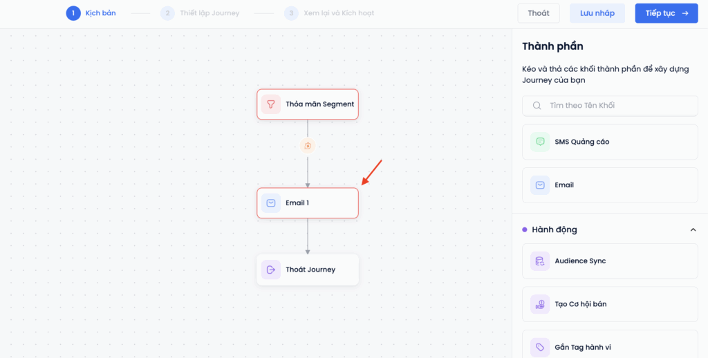 Để vào Email Builder, người dùng có thể truy cập thông qua 2 cách: thông qua menu tại Mẫu email, và thông qua chiến dịch Email marketing.