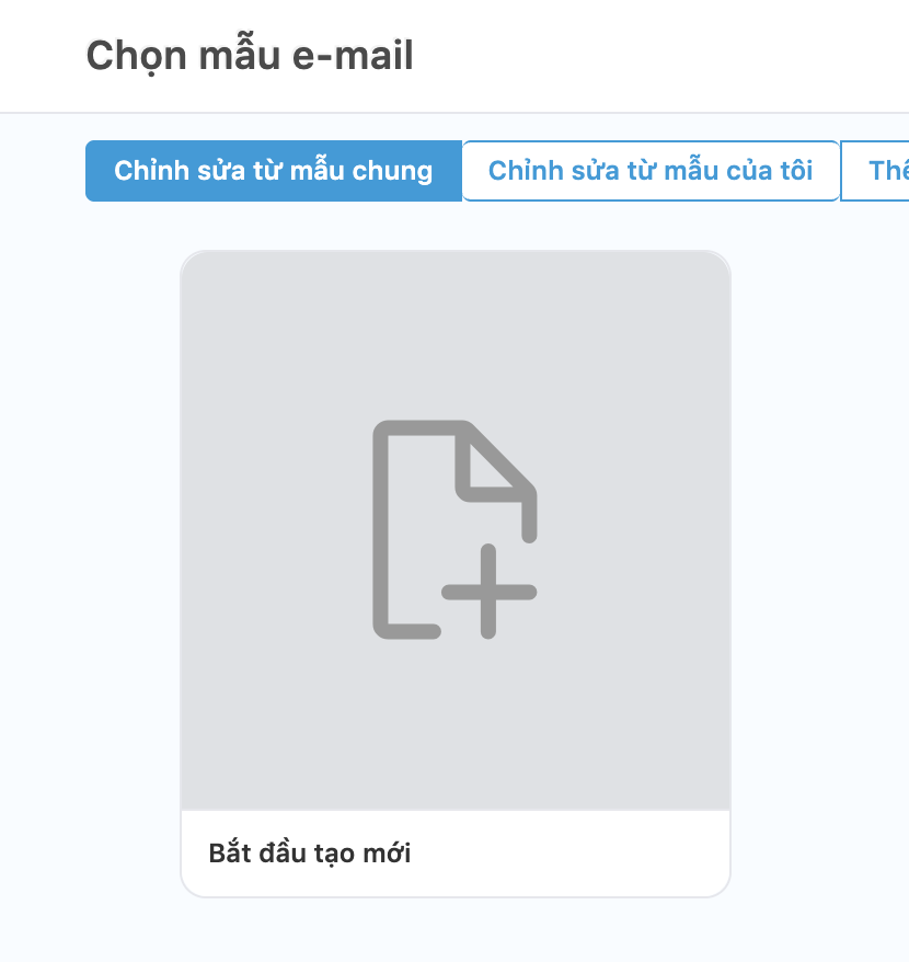 Để tạo một mẫu email hoàn toàn mới, chọn Chỉnh sửa từ mẫu chung > Bắt đầu tạo mới.
