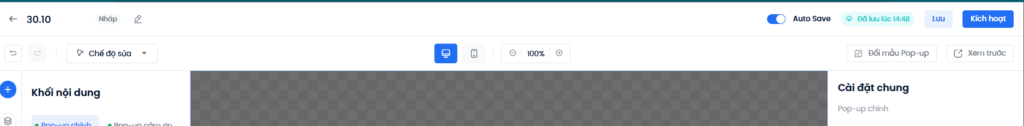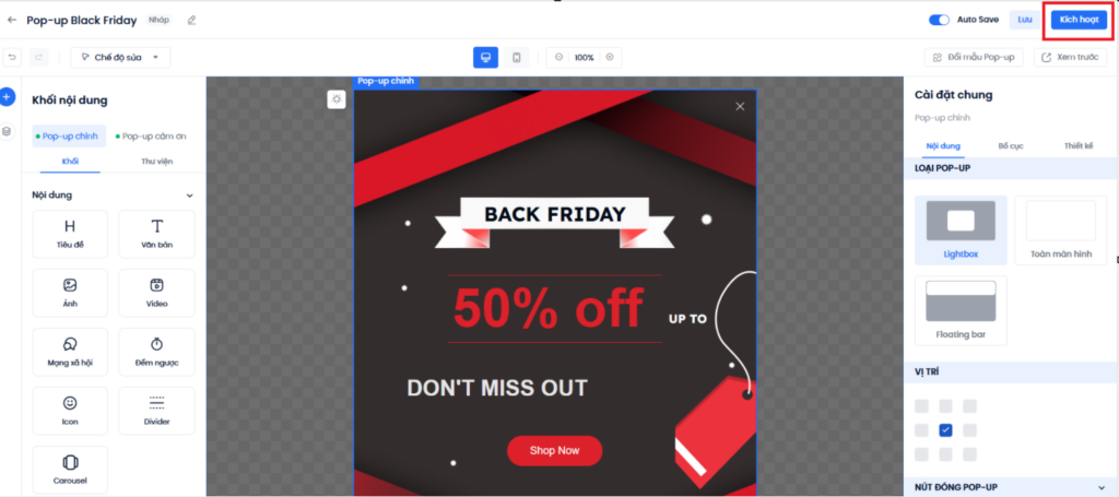 Sau khi thiết kế Pop-up như mong muốn, người dùng có thể bấm kích hoạt mẫu Pop-up.