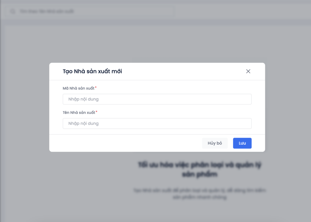 Điền tên nhà sản xuất và bấm Lưu.