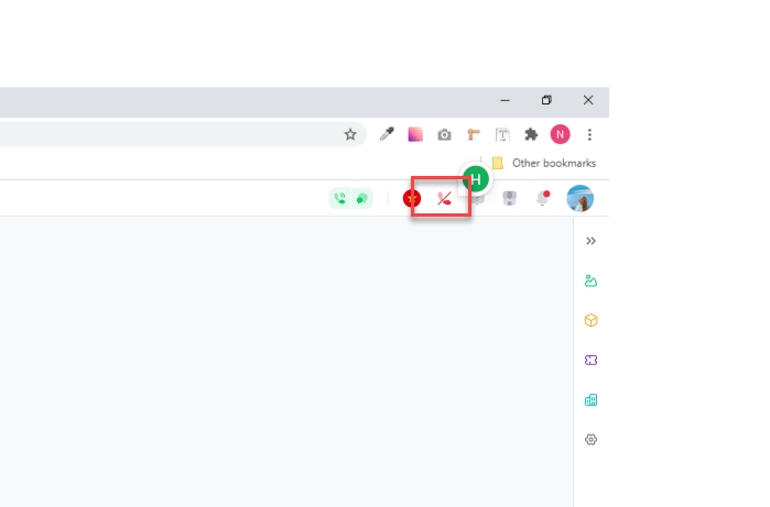 Biểu tượng gọi điện tại góc trên bên phải màn hình thể hiện trạng thái kết nối/mất kết nối của tổng đài.
