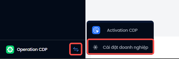 Bước 1: Chọn biểu tượng Chuyển sản phẩm → Chọn Cài đặt doanh nghiệp.