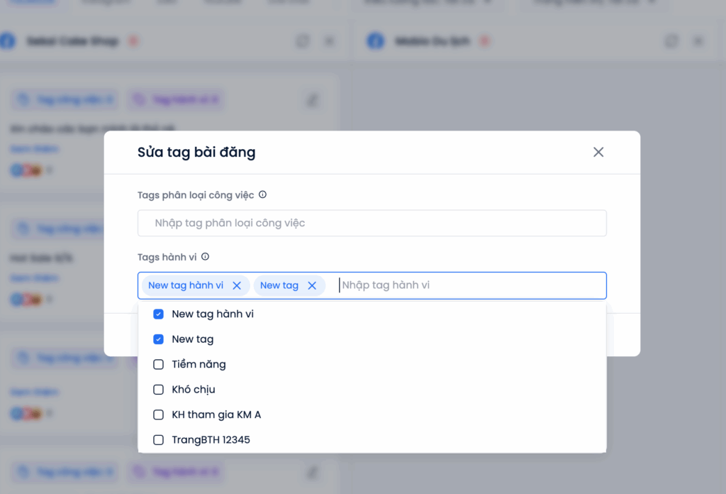 Tag phân loại công việc dùng để đánh dấu các tin nhắn, bình luận trên mạng xã hội theo nghiệp vụ của nhân viên và giúp họ lọc ra nhóm khách hàng nhanh chóng hơn.