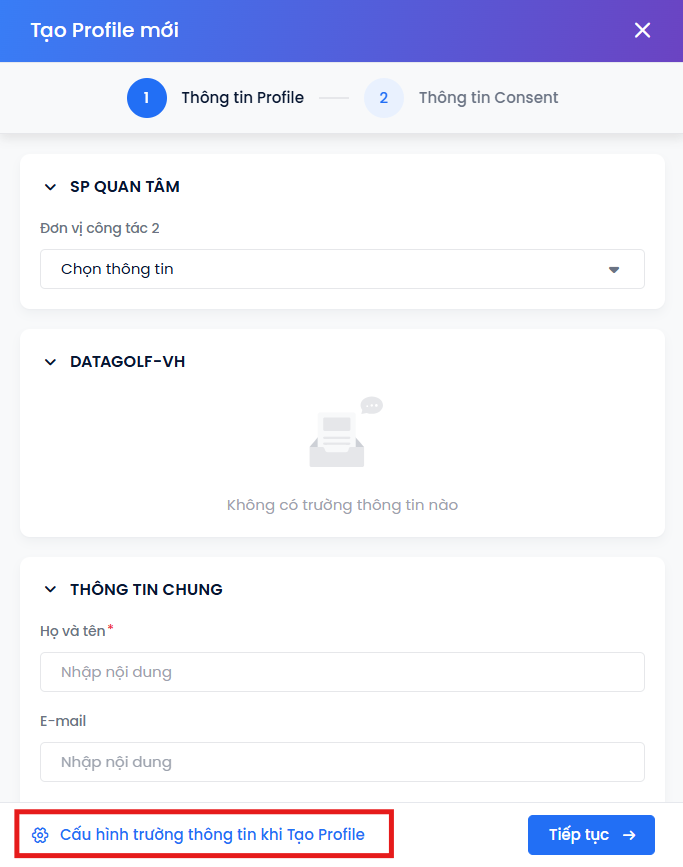 Điền các thuộc tính khách hàng bổ sung (nếu có) → Nhấp Tiếp tục.