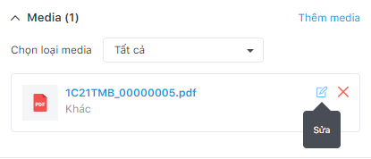 Tại giao diện chi tiết cơ hội bán, người dùng click button + ở bên phải mục Media ở phía dưới cùng bên phải giao diện.