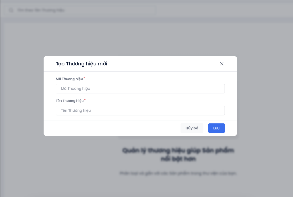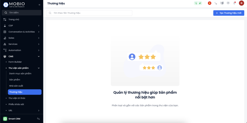 Để thêm Thương hiệu, vào mục CMS → Thư viện sản phẩm → Thương hiệu.