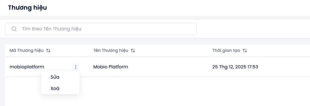 Bấm vào option bên cạnh tên Thương hiệu để Sửa hoặc Xóa.