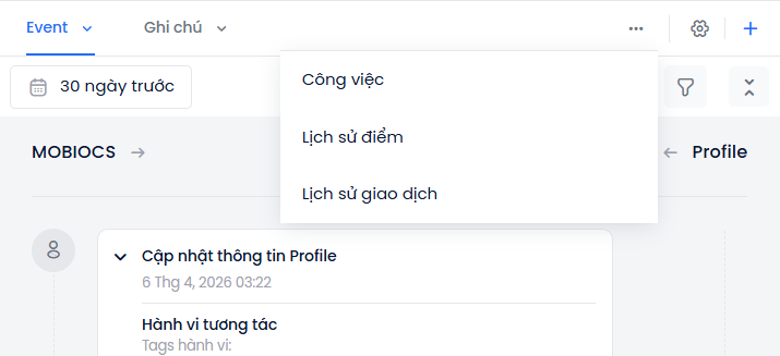 Nhấn biểu tượng mở rộng (dấm ba chấm) nằm phía trên timeline event để xem các thẻ hiển thị được cấu hình ở bước 4.2.